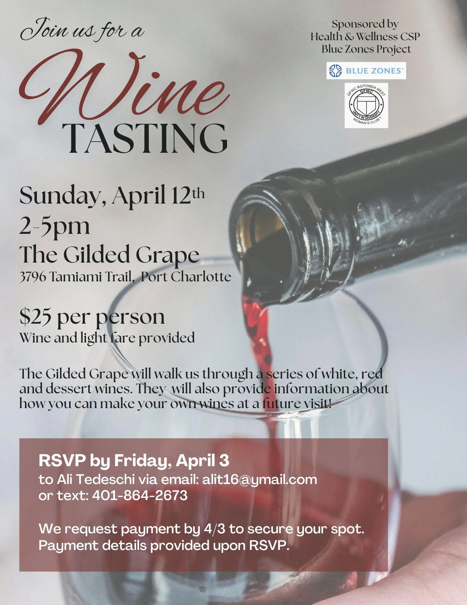 Our next blood drive is scheduled for Thursday, April 23, 2026 from 9 a.m. to 3 p.m. The location is the Marina across from the Hills Golf Course, 100 Rotonda Circle, Rotonda West, 33947. Please register online at OneBlood.org/donate-now. For questions, contact Kathryn Gallagher at 610-952-1333